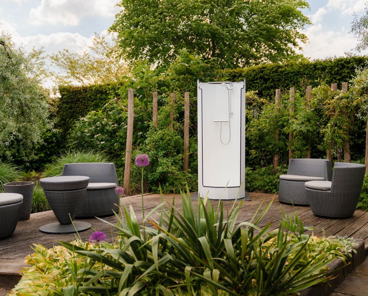De douche kan aangesloten worden op de begane grond u moet denken aan in de keuken, bijkeuken hal, woonkamer garage, onder de veranda of buiten in de tuin.